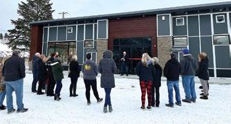 Local residents and officials, including current Canal Flats mayor Mark Doherty (black jacket and sunglasses) and former Canal Flats mayor Karl Sterzer (brown jacket) were on hand for the ribbon cutting ceremony of the new Canal Flats daycare on Friday, Dec. 16. Photos by Jean Strong