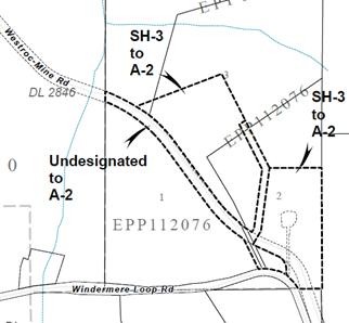 Bylaw No. 3435 cited as “Regional District of East Kootenay – Columbia Valley Zoning Bylaw No. 3255, 2023 – Amendment Bylaw No. 30, 2025 (Windermere East / Halverson & Maurer)” will amend the zone designation of those parts of Lots 2, 3 and 4 of District Lot 4596, Kootenay District, Plan EPP112076 from undesignated and SH-3, Small Holdings Rural Zone to A-2, Rural Residential (Country) Zone.