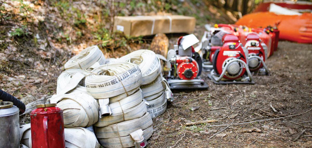 equipment like chainsaws and hoses, offering firefighters courses like first aid and wildland fire fighting, or doing essential planning.