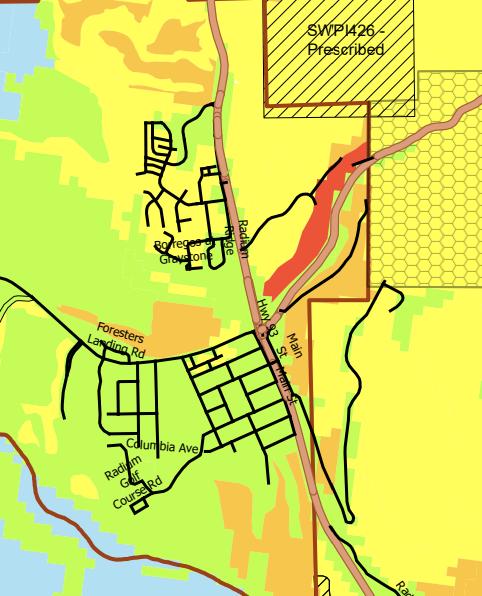 This slope was flagged as an “extreme” fire risk in Radium’s wildfire resiliency plan, the only such area on village-owned land. The other areas marked as an extreme fire risk near Radium are a few swaths of land in Kootenay National Park on or near Redstreak Mountain, which are managed by Parks Canada.