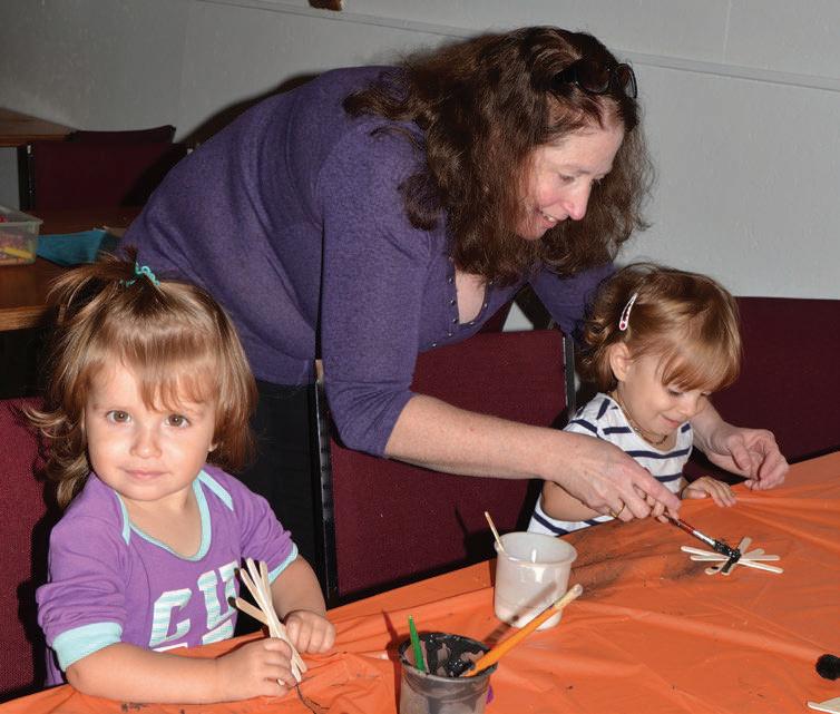 (Clockwise from top) Ayla, 7, decorates her cookie with gobs of icing before gobbling the ghosts. One-year-old twins Violet and Avianne make spiders with help from their grandma. Tyler Lake wins the adult pumpkin competition with his design of “a mouth munching on an eyeball.” Jennifer, 7, and her Jack O’Lantern beam as they win the best-pumpkin prize for kids. Mara, 8, shows off her spooky spider.