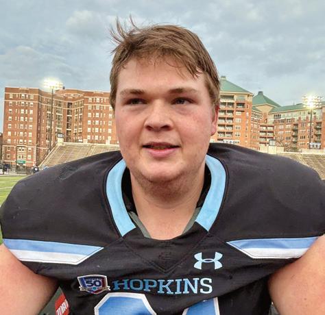 In early December, Phil Soderberg ’20 played in the final college football game of his career as an offensive lineman for Johns Hopkins University. Phil – a senior environmental studies major – and the Blue Jays made it all the way to the Elite 8 of the NCAA Division III football championships after defeating Western Connecticut State (62-20) and Union (39-17), before falling short in a 39-36 loss to Randolph-Macon. Johns Hopkins enjoyed an undefeated regular season last fall and finished 12-1 overall.