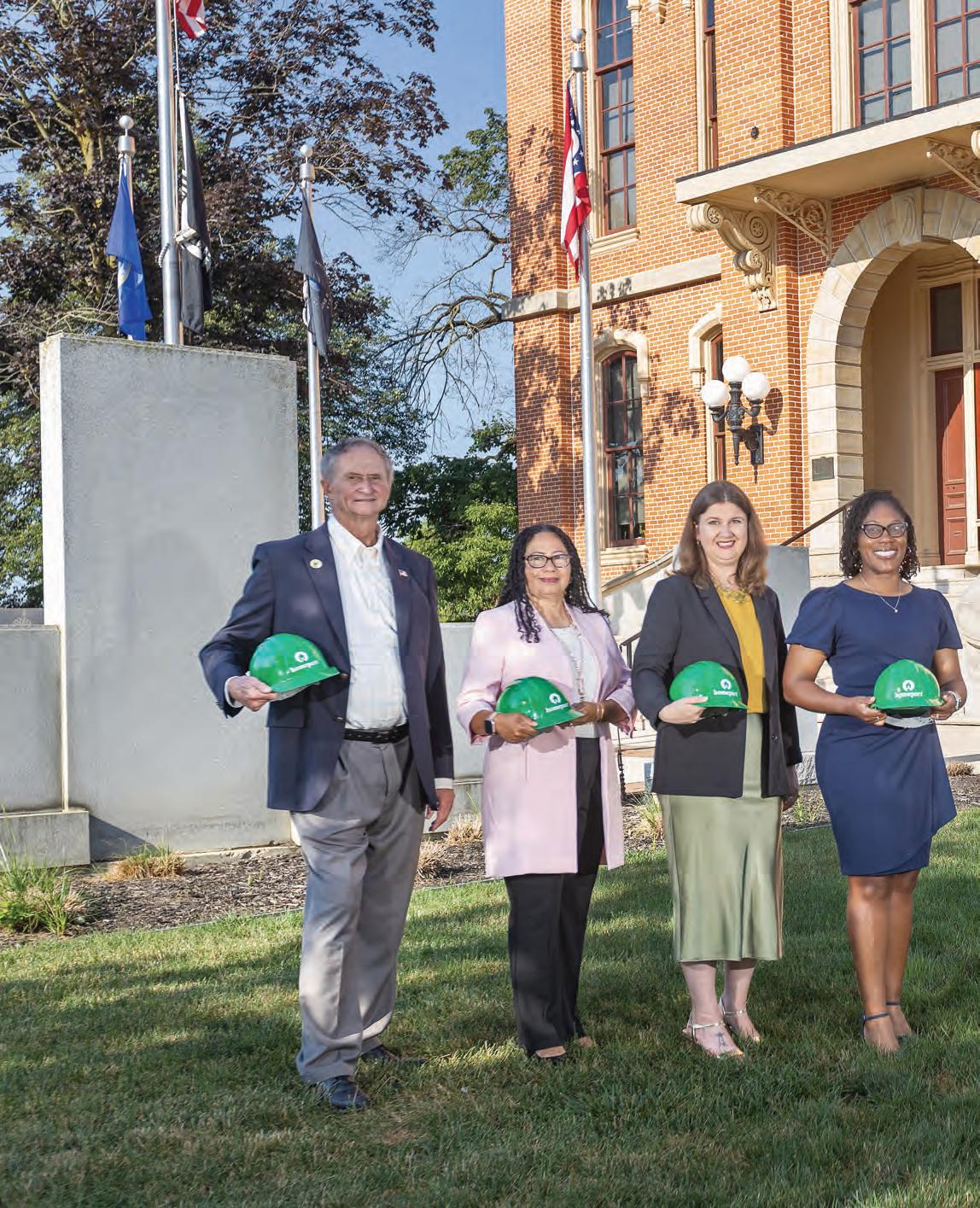 Left to right: Delaware County Commissioner Gary Merrell; Robyn Judge, Homeport board chair; Kelsey Fox of United Way; Leah F. Evans, president and CEO at Homeport; Delaware Mayor Carolyn Kay Riggle; Gina Grote of United Way; and Delaware County Commissioner Jeff Benton.
