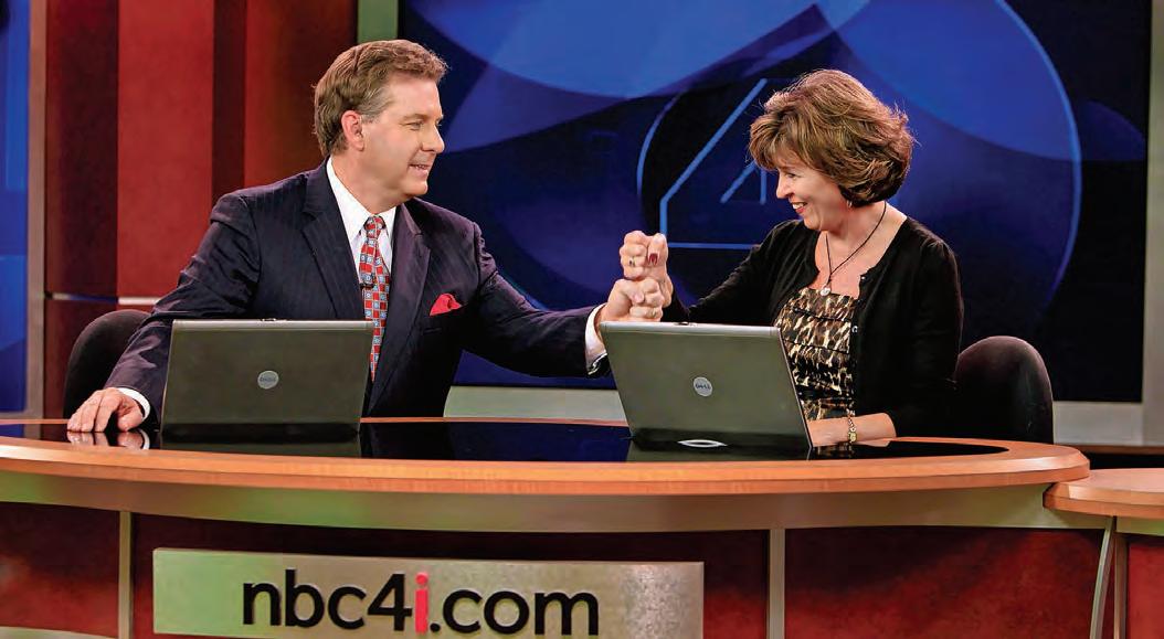 Marshall and Kerry Charles share a laugh between news segments in the WCMH studios.