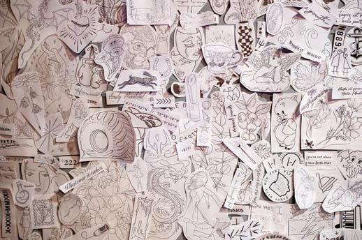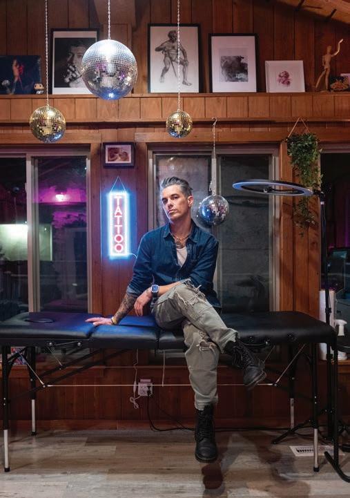 The almost dreamy atmosphere is relaxing for clients being tattooed and inspiring for Rigsby, who also writes and produces his own music under the name Vesperteen. “This is the first time I’ve completely produced this much music on my own,” he says. ◆