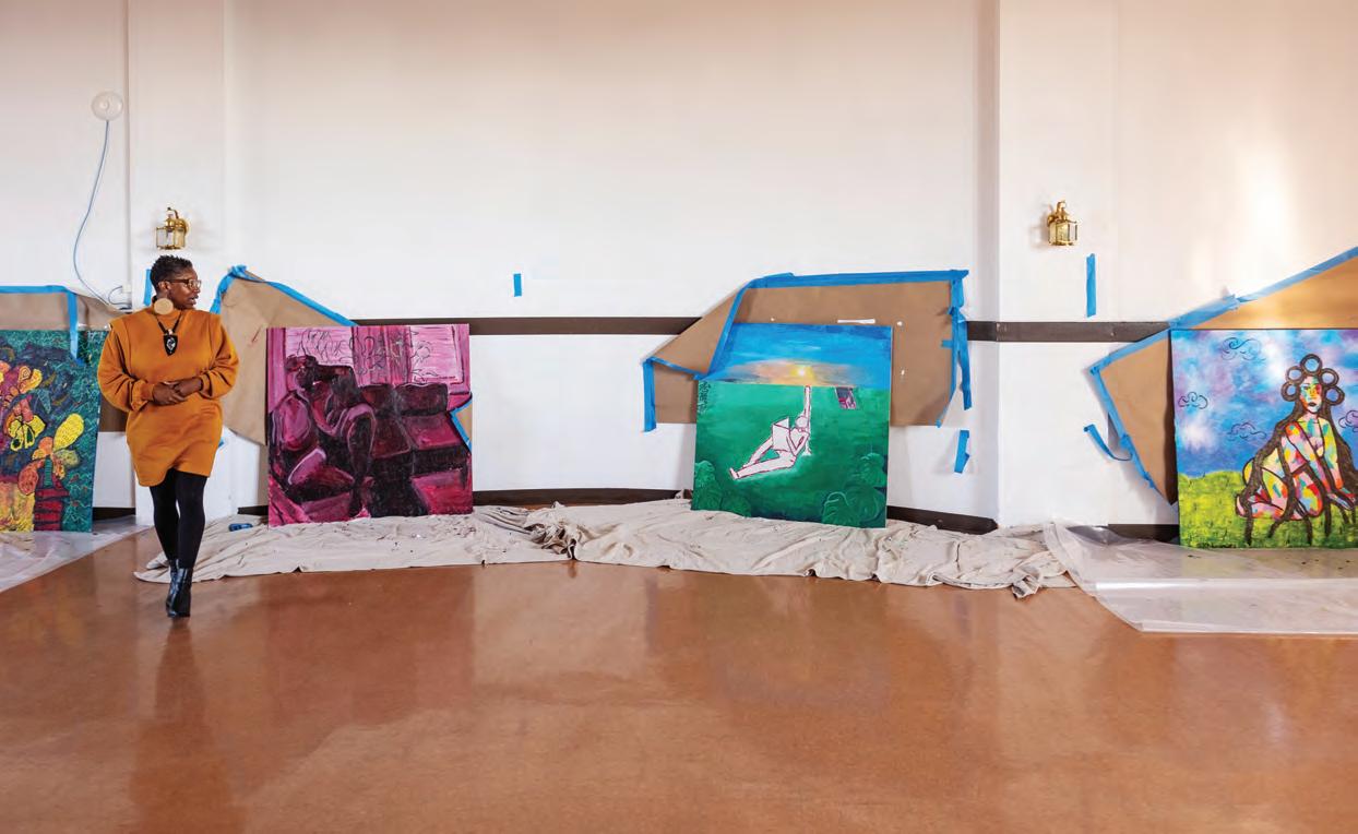 Caricatures of popular culture icons— from guitar heroes of the ‘60s to modern R&B stars—line the walls of Evan Williams’ studio space in the Center of Entrepreneurial Development (COED) on East Main Street. Williams, one of the facilities managers, helped create the business development center that includes offices, meeting rooms and conference spaces, as well as studios for artists.