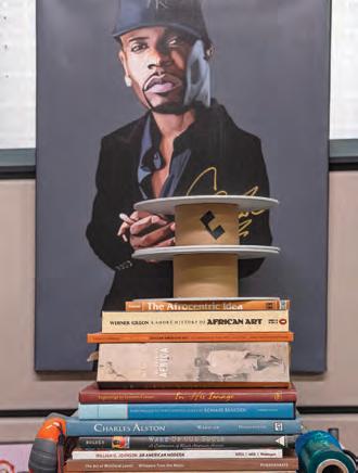 The caricatures represent the artist’s move from working sales for years to finding his way back to his love of creating art. The CCAD graduate was encouraged by friends and family to follow his dreams, quit his sales job and return to art.