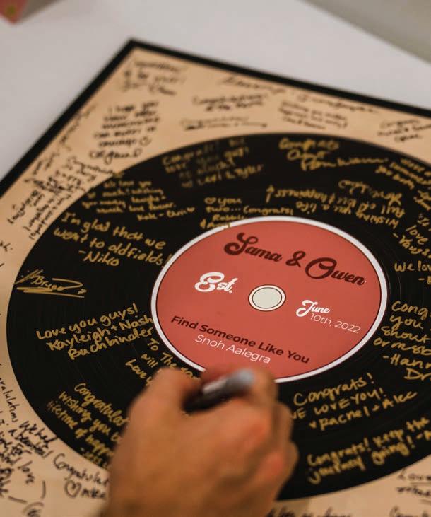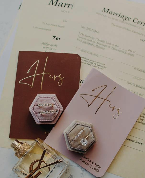 to plan your perfect day. In these pages, you’ll find everything from inspiration for alternatives to guest books (Page 26) to practical advice on how to change your name after the wedding, especially if both partners are making a change (Page 22), to the latest trend in displaying that newly shared last name (Page 12).