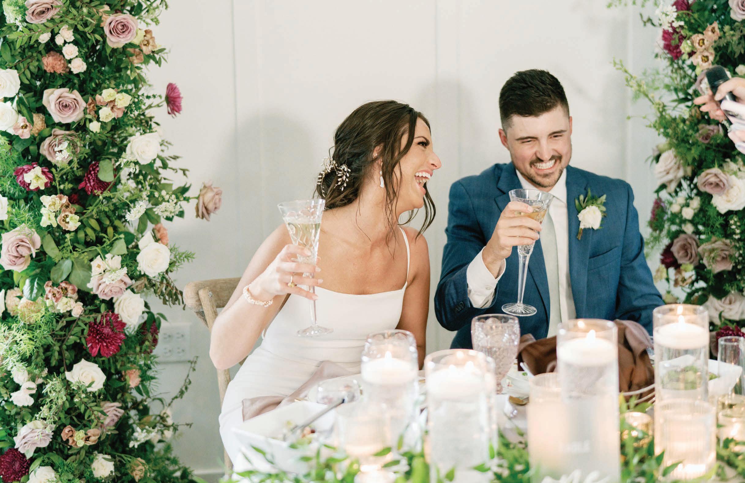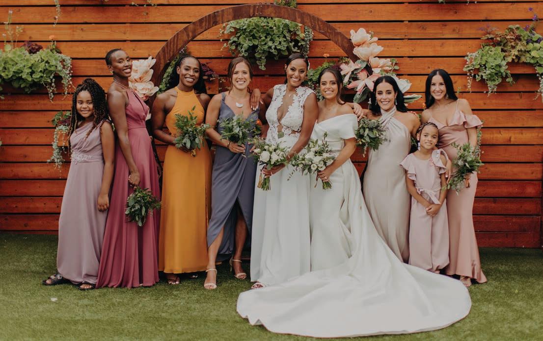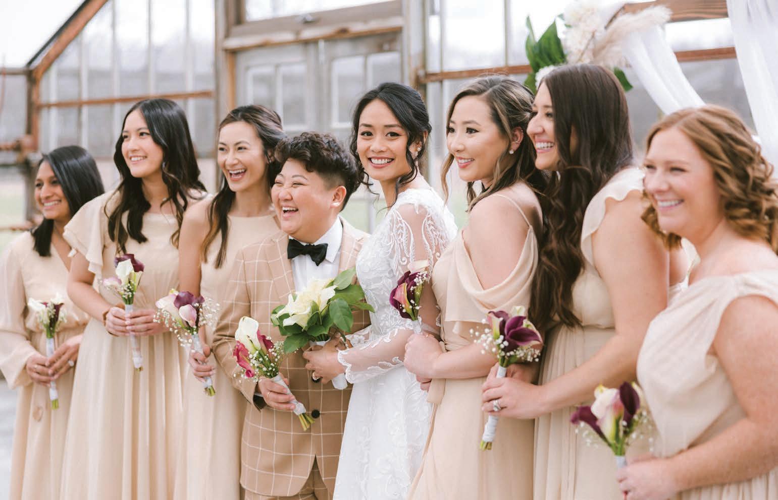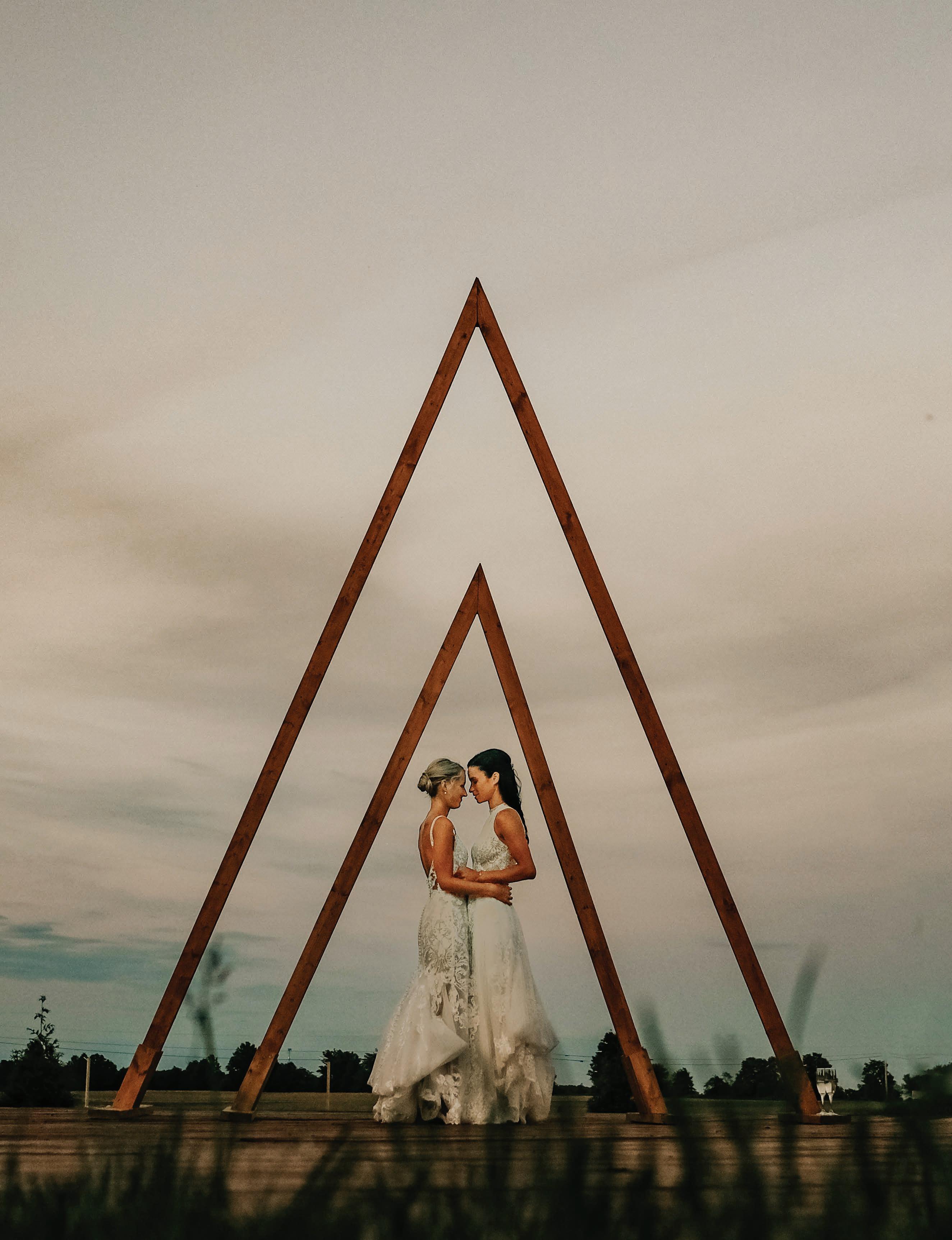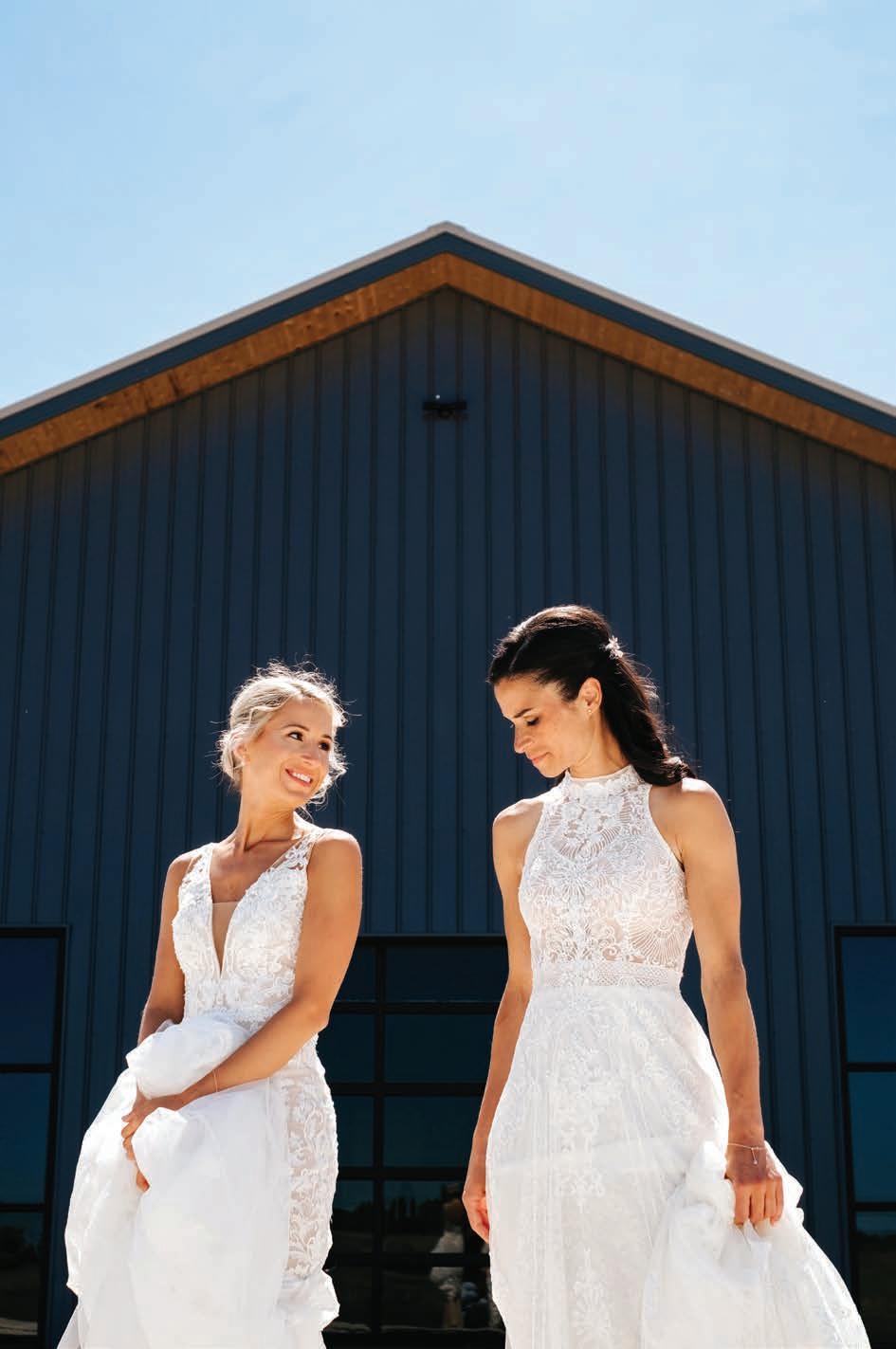 “We wanted to incorporate some of the better things in life—food and travel!—to make the day a bit more personal,” says Hannah Macko of her and Kristin Peoples’ June 4, 2022, wedding at Retreat 21. The brides made intentional choices in the menu to delight the taste buds, and they named guest tables after places they’d traveled together (Paros, Greece; Patagonia, South America; Plitvicka Jezera, Croatia; Garibaldi Lake, Canada; and Barcelona, Spain) instead of using numbers. Still, Hannah says, the most memorable part of the day was “being surrounded by our closest family and friends.”