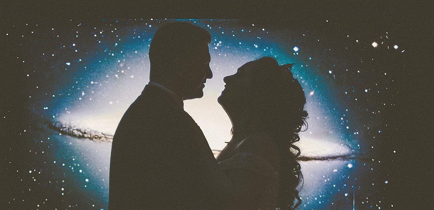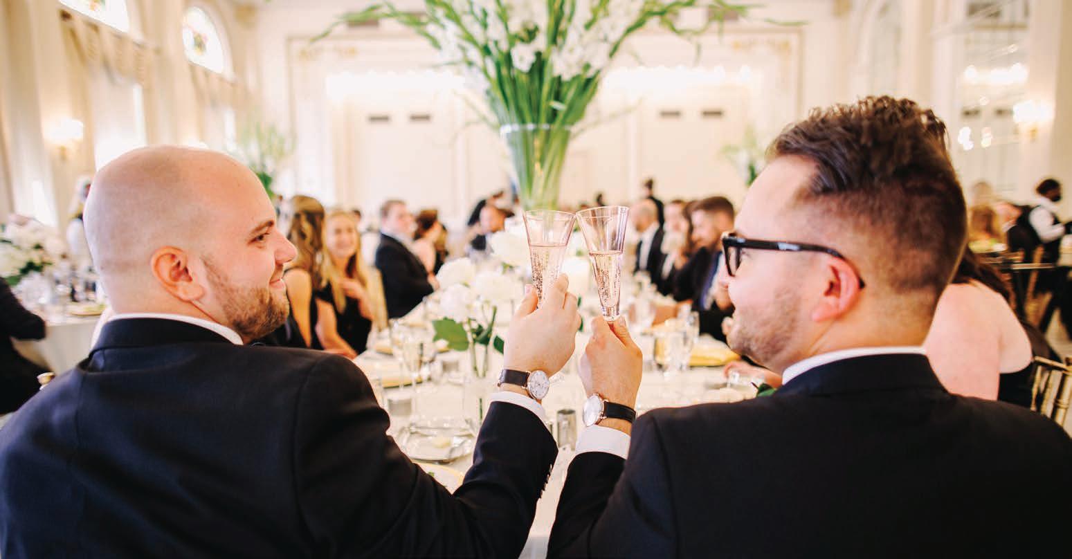 Cleveland-based DJ company Lo-Key Entertainment pulled out all the stops for Emilio Amigo (left in inset photo) and Doug Smith's May 15, 2022, wedding at the Fives. In addition to marquee letters, the company provided indoor fireworks and a fog machine for the dance floor.