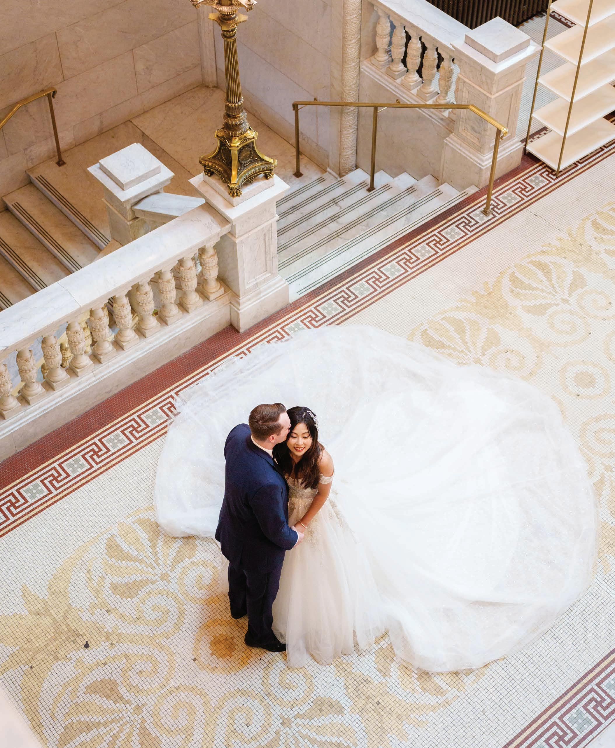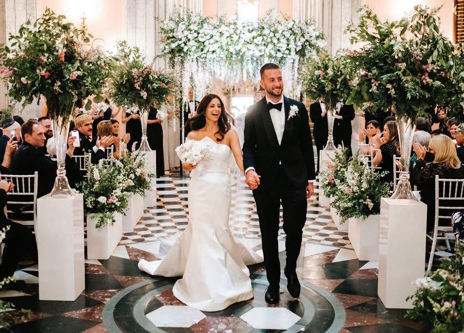 “I loved the idea of being able to wear something really clean for photos and my reception, but then something really over-the-top, really fun, for our ceremony,” Morgan says.