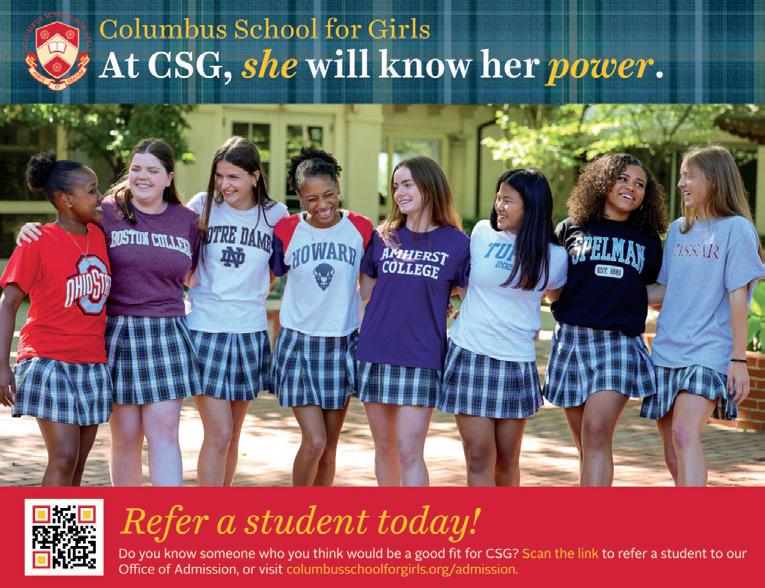 The unparalleled programming through the Institute is just one example of the ways in which CSG continues to evolve to meet the needs of today’s girls and young women. We have helped generations of girls nd and know their power because of our ongoing commitment to excellence. That commitment continues to push us forward as we prepare our young women to be con dent and courageous leaders in an ever-evolving, global society. There is nowhere else I’d rather be than here with you all, at the forefront of the most transformative programming for girls in central Ohio. As we turn the page on this chapter, and move into our next, I can’t wait to see all that we achieve together as we realize a bright and bold future for CSG.
