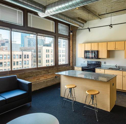 Meet 30 East, Columbia’s newest addition to its residence centers with room for 340 students. Kick back in apartmentstyle spaces with an en-suite bathroom, with two to five students per residence, and take advantage of the full kitchen. And don’t forget the location—you’ll be steps from the Student Center and one block from Grant Park.