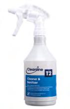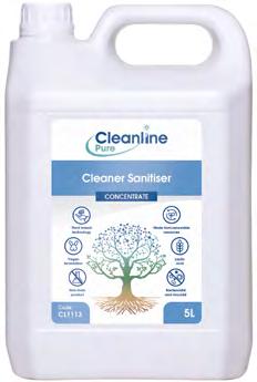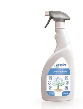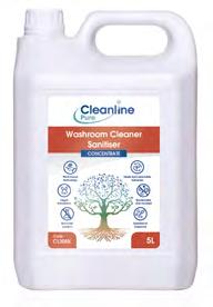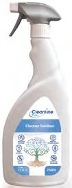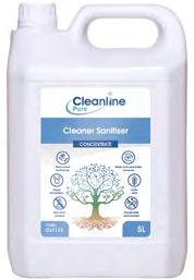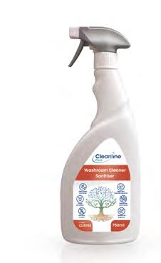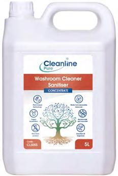 Cleanline Pure Washroom Cleaner Sanitiser is a fragranced, readyto-use, natural active-based sanitiser for dual-action cleaning and disinfection of all washroom hard surfaces.