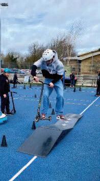 The day was organised by the South Cambs School Sport Partnership and delivered by professional stunt scooter rider Terry Price and ex-BMX world champion Mike Mullen Students first listened to an inspirational talk from Mike, where he spoke about how he got