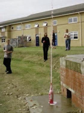 AN old experiment 'Shooting film cannisters' with a few changes was one of the Science Club projects Each group chose which vinegar they wanted, and measured the amount out into a 100ml beaker They then poured that amount into either a dark or clear coloured film cannister Next, the pairs took the amount of bicarbonate of soda they wanted, wrapped it into a piece of tissue paper, and stuck it to the lid of the film cannister After the preparation of it, groups were ready to experiment! Most of the cannisters were very sucessful, with the turning over of the cannisters the hardest part There were many explosions, bubbles and mess!