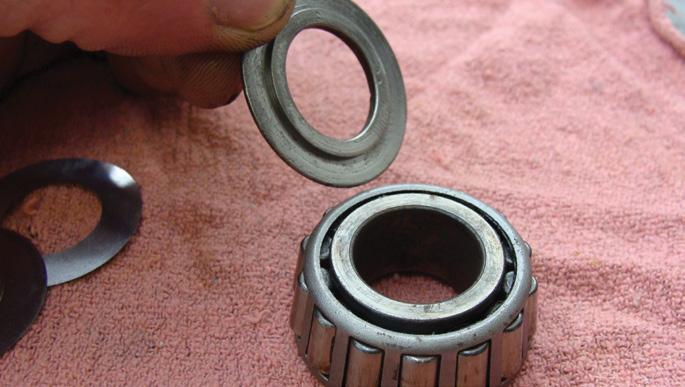 Here you can see that the bearing race is pitted. This tells me that the bearing is no good. Lack of grease and proper bearing end play led to this failure.