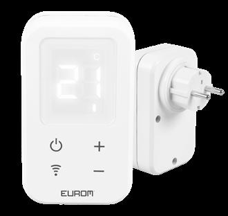 The WiFi thermostat is an intelligent thermostat designed to operate multiple Eurom heaters simultaneously. A big advantage is that by connecting the heaters via the WiFi thermostat, you create a central measuring point in the room. The temperature is measured there and the WiFi controls the heating individually.