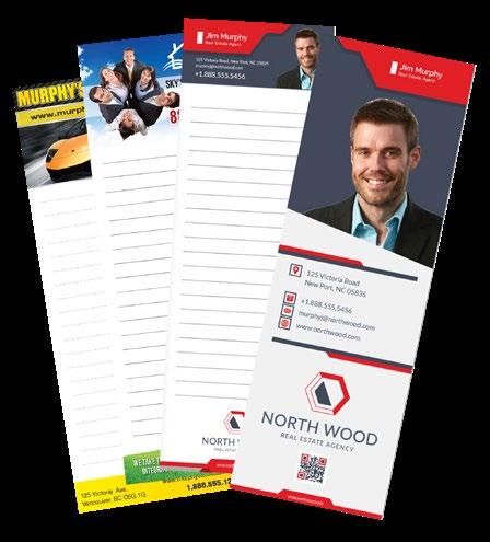 Have questions? Call us toll free: 1.877.322.6632 49 • Provide advertising for you and your business year round! • Generate over 850 impressions in their lifetime.* • Cost less than 3/10ths of a cent per impression! • Are among the most popular and costeffective advertising options available! • Provide the greatest bang for your advertising buck! • Mixing and matching a variety of stylish calendar themes can help you target a number of different demographics. *ASI (Advertising Specialty Institute) Reach shoppers in your area with your ads, FREE! WWW.PLUMTREEAPP.COM GARDEN BIRDS EXOTIC CARS IMPRINTED WALL CALENDARS 150 300 500 1000 $1.60 $1.40 $1.25 $1.10 SETUP FEE: $30 scan for more choices