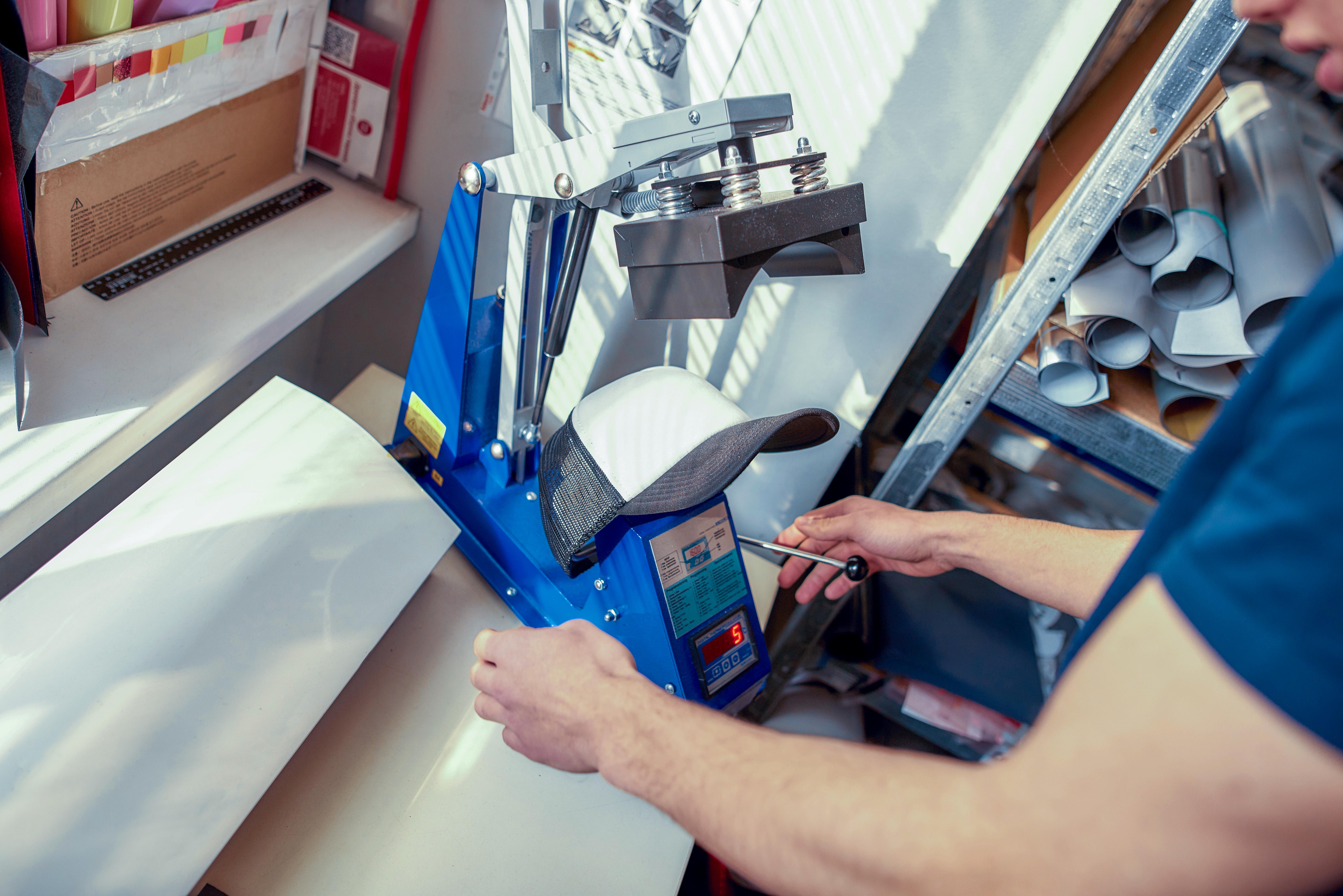A full-color graphic is printed on heat transfer material and pressed onto fabric using a heat press. This method is great for multi-colored logos or logos that consist of a color gradient.