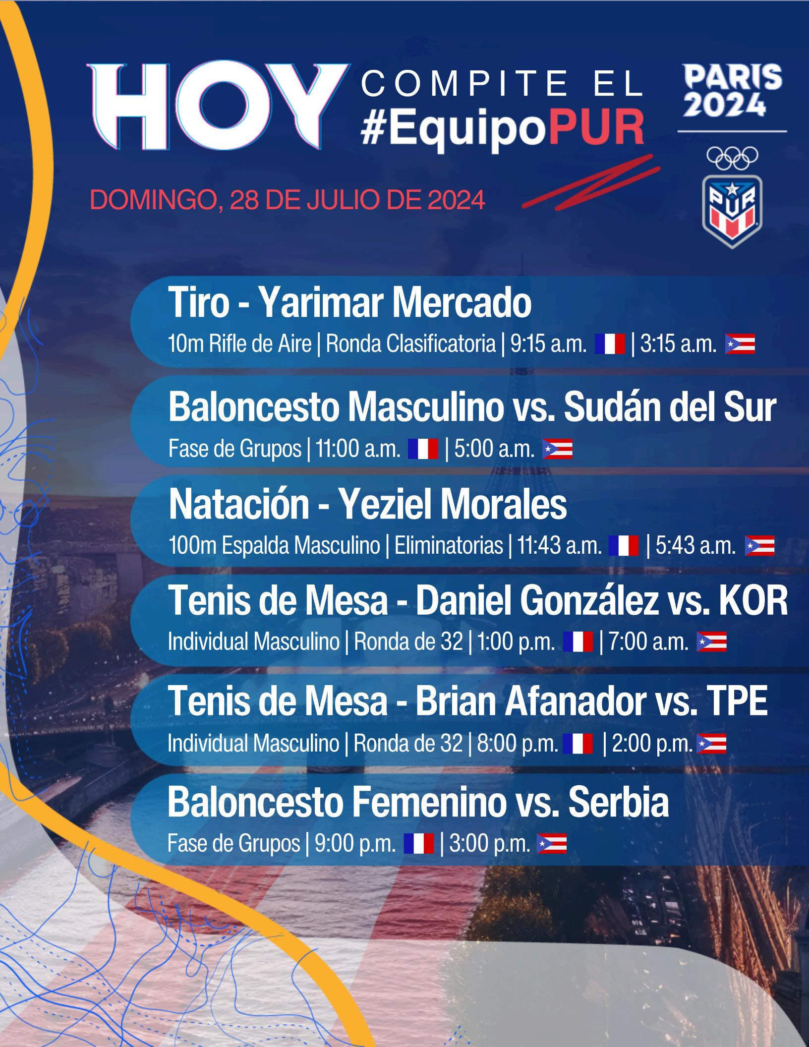 El dorsista también estará compitiendoenlos200metrosespalda elmiércoles,21dejuliodesdelas5:00 a.m. de Puerto Rico/ 11:00 a.m. de París.