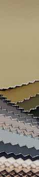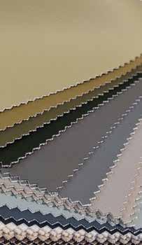 Panaz’s Stingray faux leather showcases new metallic hues, including Gold and Zinc, alongside a unique textile backdrop featuring their custom printing capabilities, blending innovation with luxury.