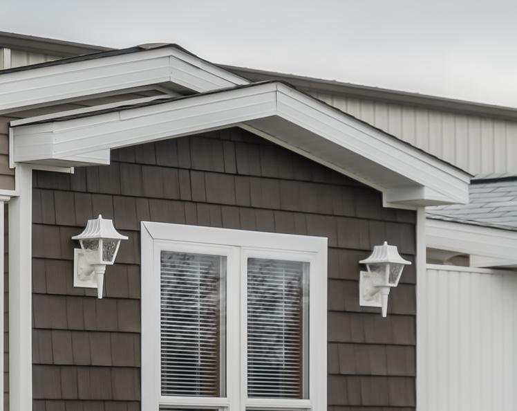 26’-8” Dormer with Bumpout - Available with 6.98/12, 5/12 and 12/12 Roof and with optional Vinyl Shake Accent in Bumpout & Optional Gable Pediments