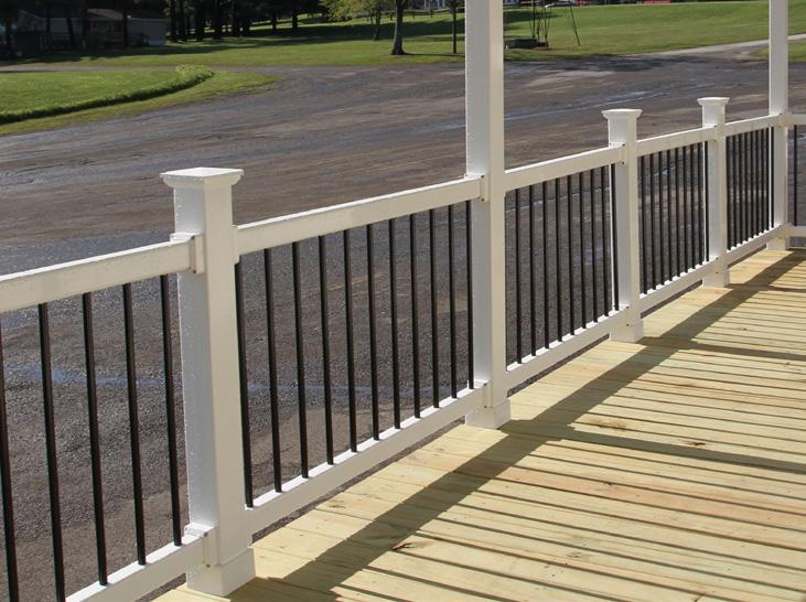 Shown with Black Round Aluminum Spindles (Also Available in White) & Optional Vertical Siding