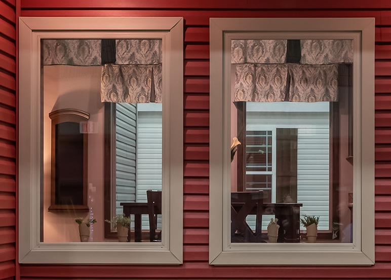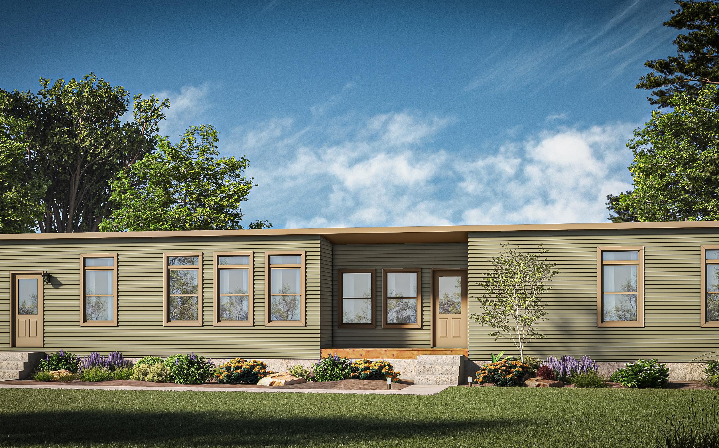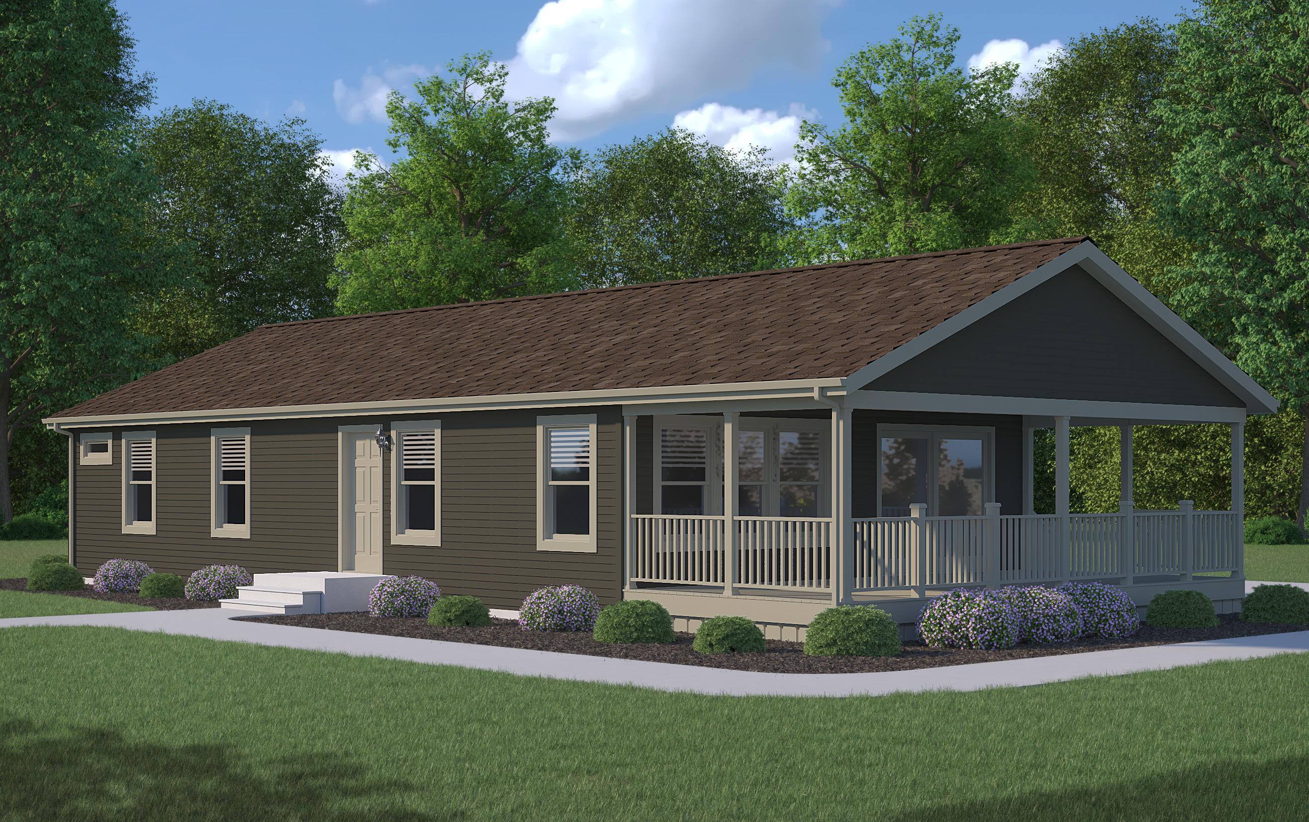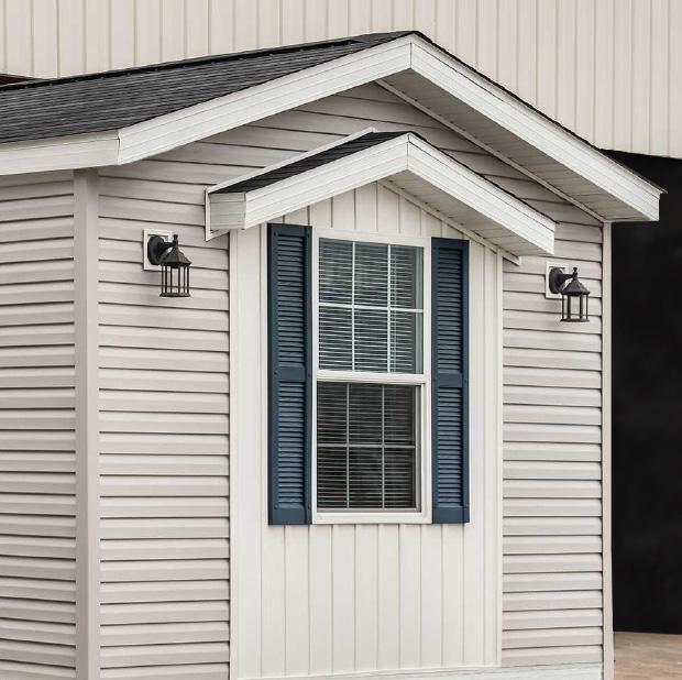 Shown With: Transom Window, Sliding Door, Attached Porch, Shake Accent, Half Lite Door, #61 Box Bay and Lineals