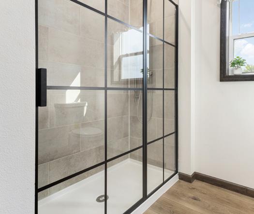 60” Tile show Black Grid Shower door