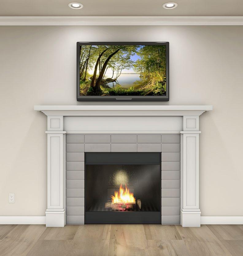White Acadia Fireplace Surround with 4x12 Urban Mist Tile Accent (No Hearth)