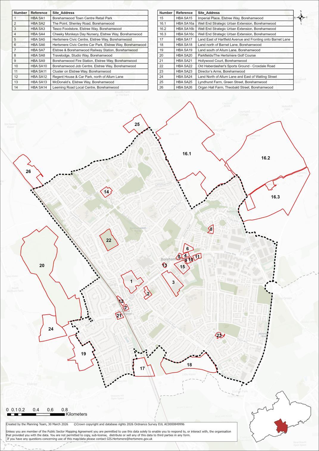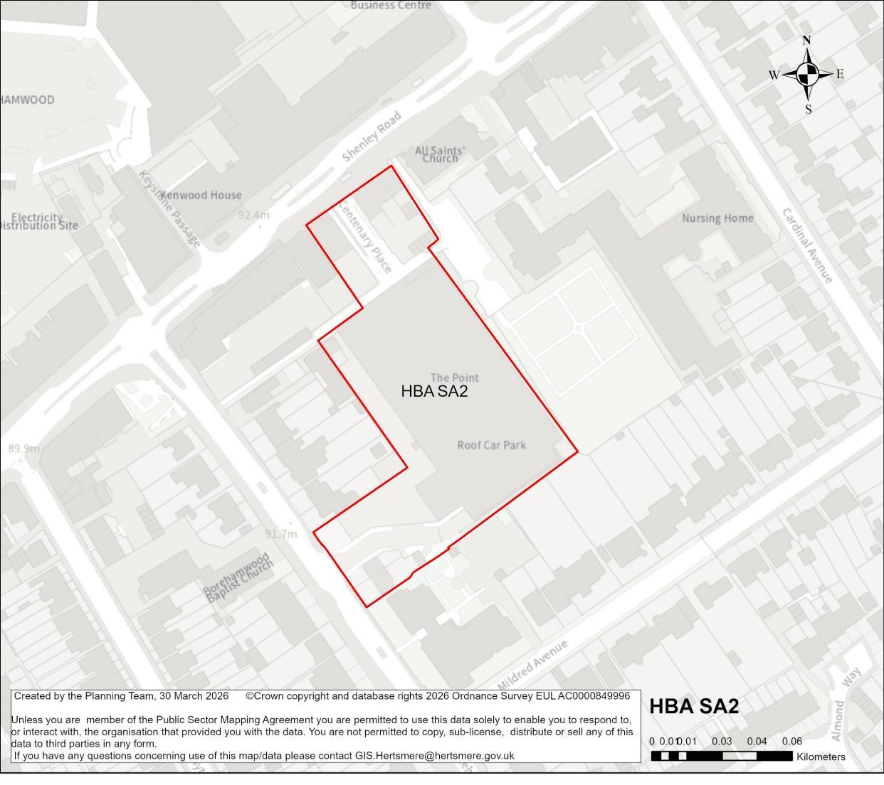 A comprehensive mixed-use redevelopment is proposed, which will contribute towards wider town centre regeneration and make more efficient use of this sustainable location. This will comprise compatible main town centre and residential uses, as well as re-provide the existing public parking. The existing leisure/community uses will ideally be relocated elsewhere as part of comprehensive redevelopment on the town centre, for example within the redeveloped Borehamwood Retail Park site (HBA SA1).