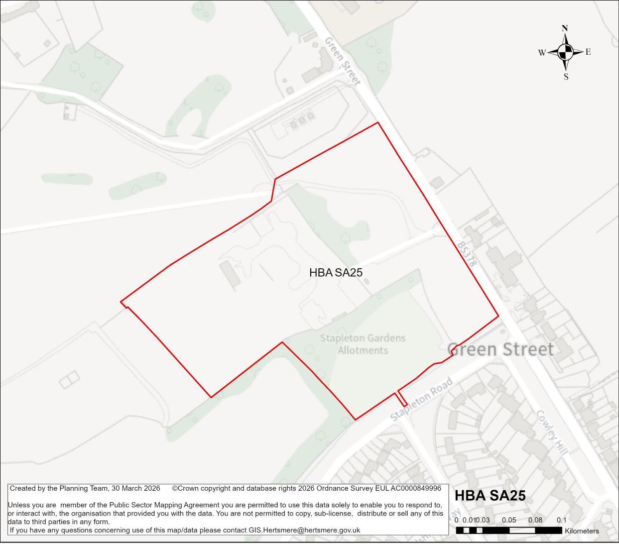 Planning Status 24/0451/FUL: Full planning application for 186 dwellings, community building, associated parking, landscaping and open space, with vehicle and pedestrian access from Green Street and a separate pedestrian access from Stapleton Road.