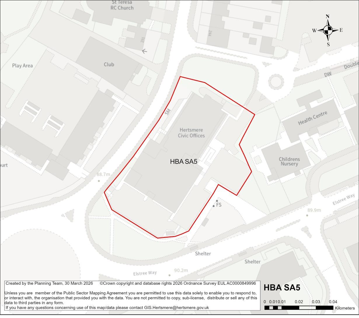 Site Details Local authority offices, police station and NHS clinic. The site occupies a key location on the Shenley Road/Elstree Way/Brook Road roundabout and adjoins the Elstree Way Clinic site (HBA SA4).