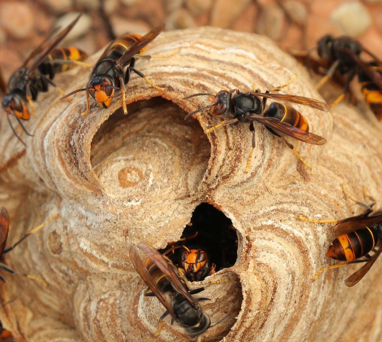 Aziatische hoornaars zijn schadelijk voor honingbijen, hommelsoorten en andere bestuivende insecten. Ze hebben een negatieve impact op onze biodiversiteit. Ontdek je een nest? Meld dit op www. vespawatch.be. Probeer niet zelf het nest te verwijderen, want de Aziatische hoornaar is agressief als zijn nest bedreigd wordt.
