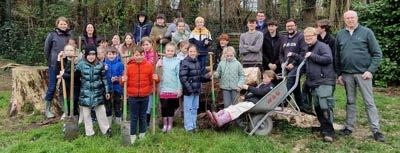 ken waar de leerlingen zelf alles moestenzaaienenditnuookmoeten onderhouden. Ook dit is een leerproces. De extra speelelementen en toestellen worden vervaardigd uit natuurlijk materiaal. Vergroening en duurzaamheid zijn duidelijk de centrale codewoorden voordenieuwespeelplaats.