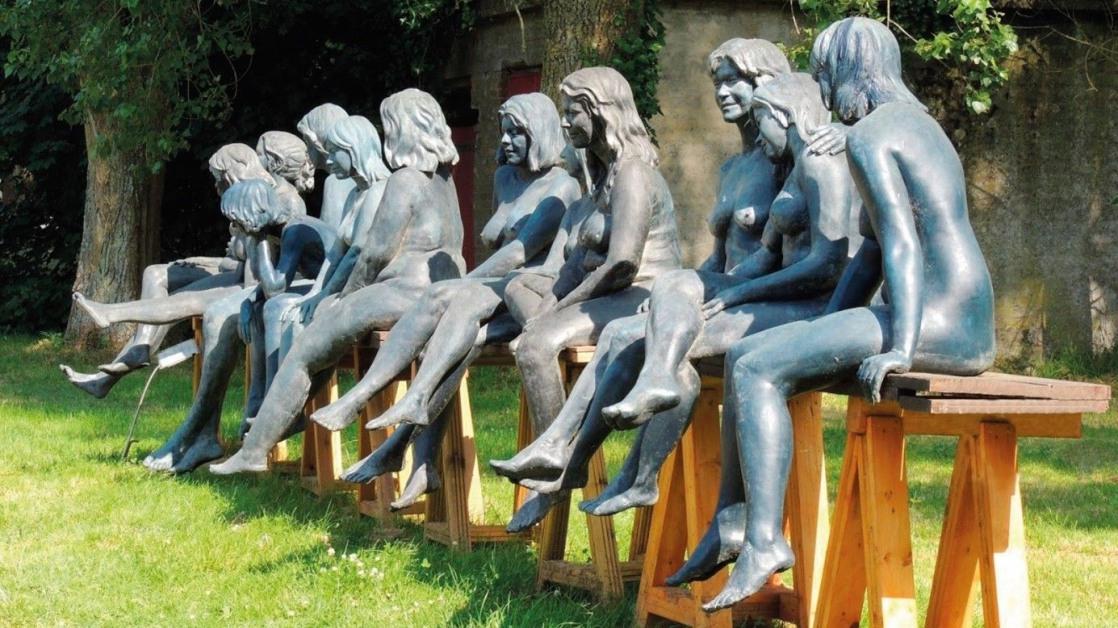 Dezezitbankmetdameswordteenvandepronkstukkenopdetentoonstelling.