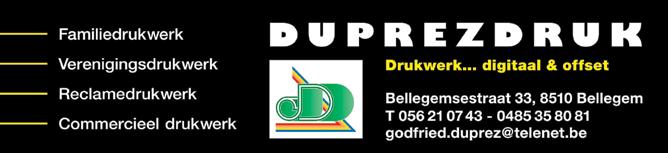 Colofon DORPSKRANT Bellegem - R O llegem verschijnt 4 keer per jaar | O P l Age: 3200 exemplaren per editie, bus aan bus bedeeld. Wil je het magazine ontvangen en woon je buiten Bellegem of Rollegem, dan kost je dit € 9. | A Dve RT e NT ie S: Kostprijs: per editie € 60, voor 4 edities: € 200. | R e DACT ie: Axel Vandenheede, Hans Dierick, Guido Lefebvre, Gaby Van Huylenbrouck, Helena Deleu, Judith Geldof, Marc Roobrouck, Eric Vanzieleghem, Jacques Platteau en Melissa Seynaeve, Lize Meert, Paulien Deseure samen met heel wat losse medewerkers en vrijwilligers | ve RANTWOORD eli JK e U i Tgeve R: Axel Vandenheede, Tombroekstraat 2, 8510 Rollegem | l AY-OUT: Hilde Couttenye | DRUK: Drukkerij Duprez | vO lge ND e e D i T ie: Verschijnt op 21 juni 2024.
