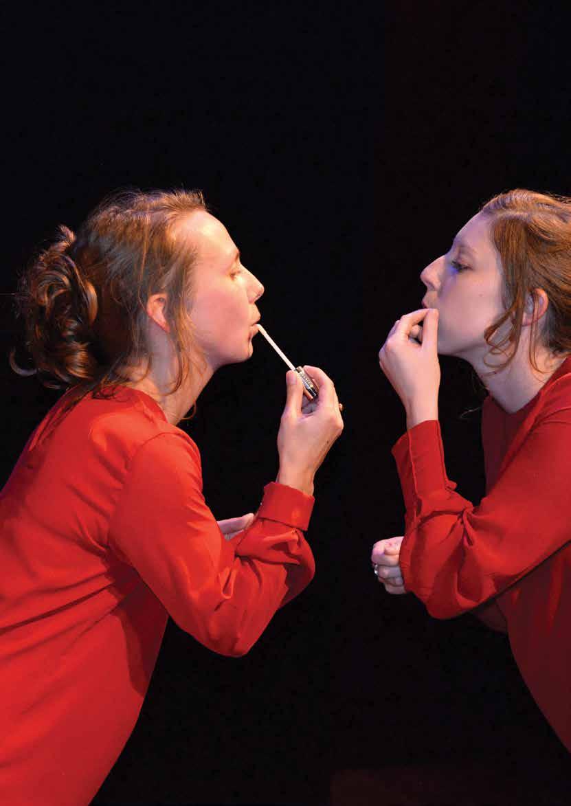 genlijk maar 1 woord, maar stond wel het hele stuk op scène. Om van een vuurdoop te spreken! Intussen speelde ik in een twintigtal producties en schreef ik voor Scherven drie volavondstukken.”