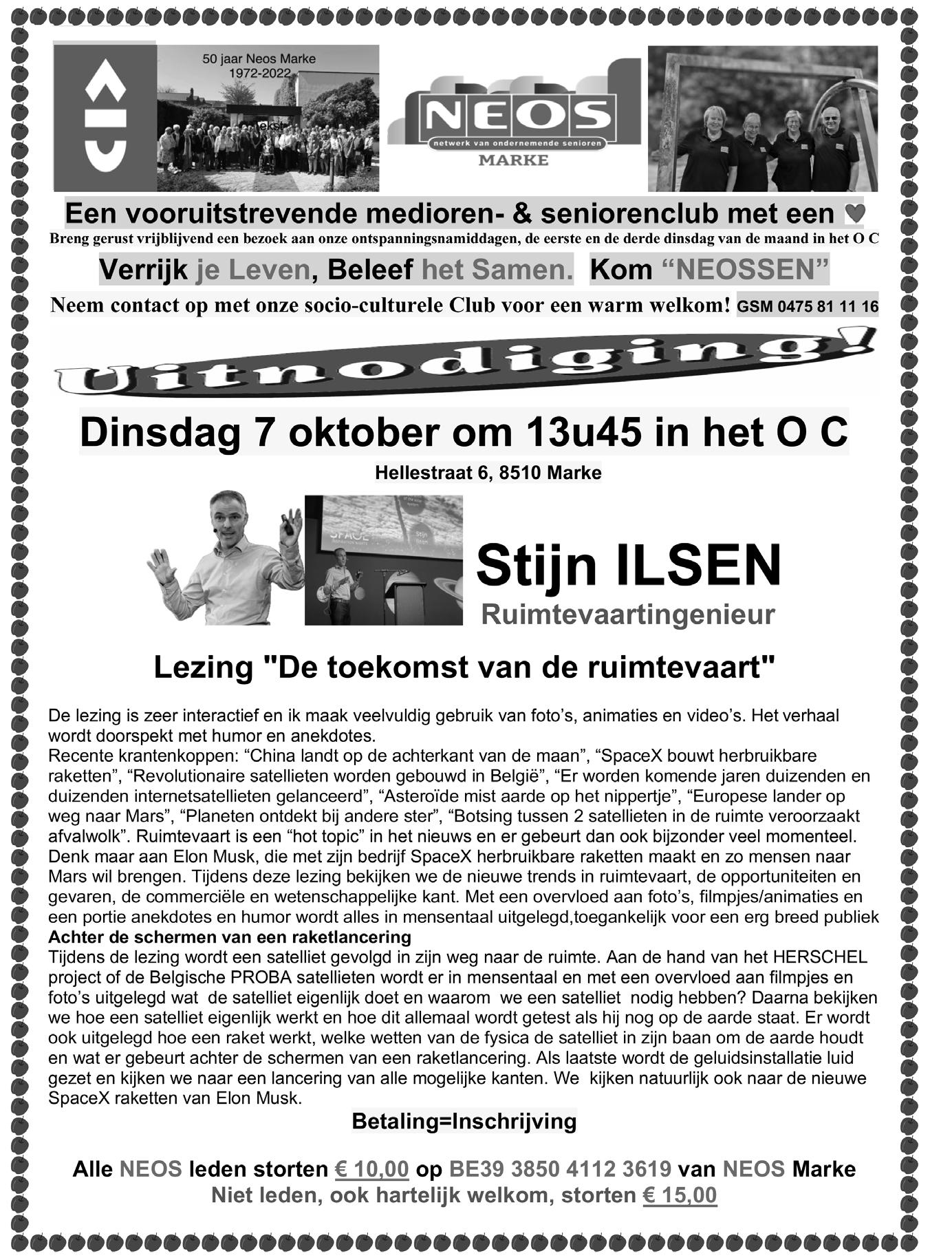 – Lezing stijn Ilsen, de toekomst van de ruimtevaart: dinsdag 7 oktober