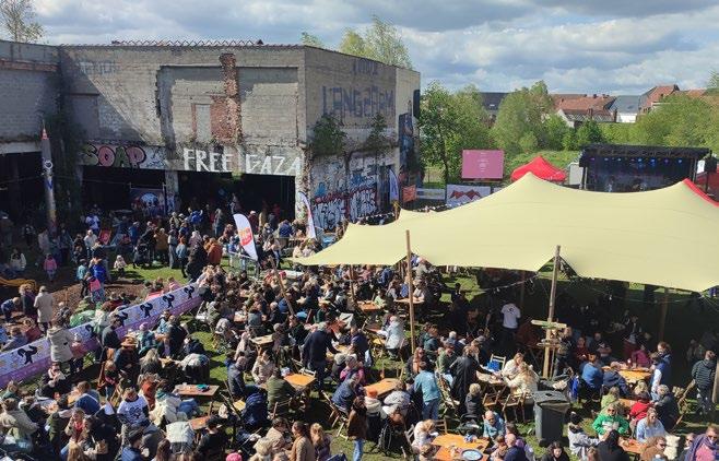 Het grasveld van de V-TEX is één groot terras. Met verrassende muziekintermezzo's, animo voor de kinderen in junglethema en zomerse hapjes en drankjes.