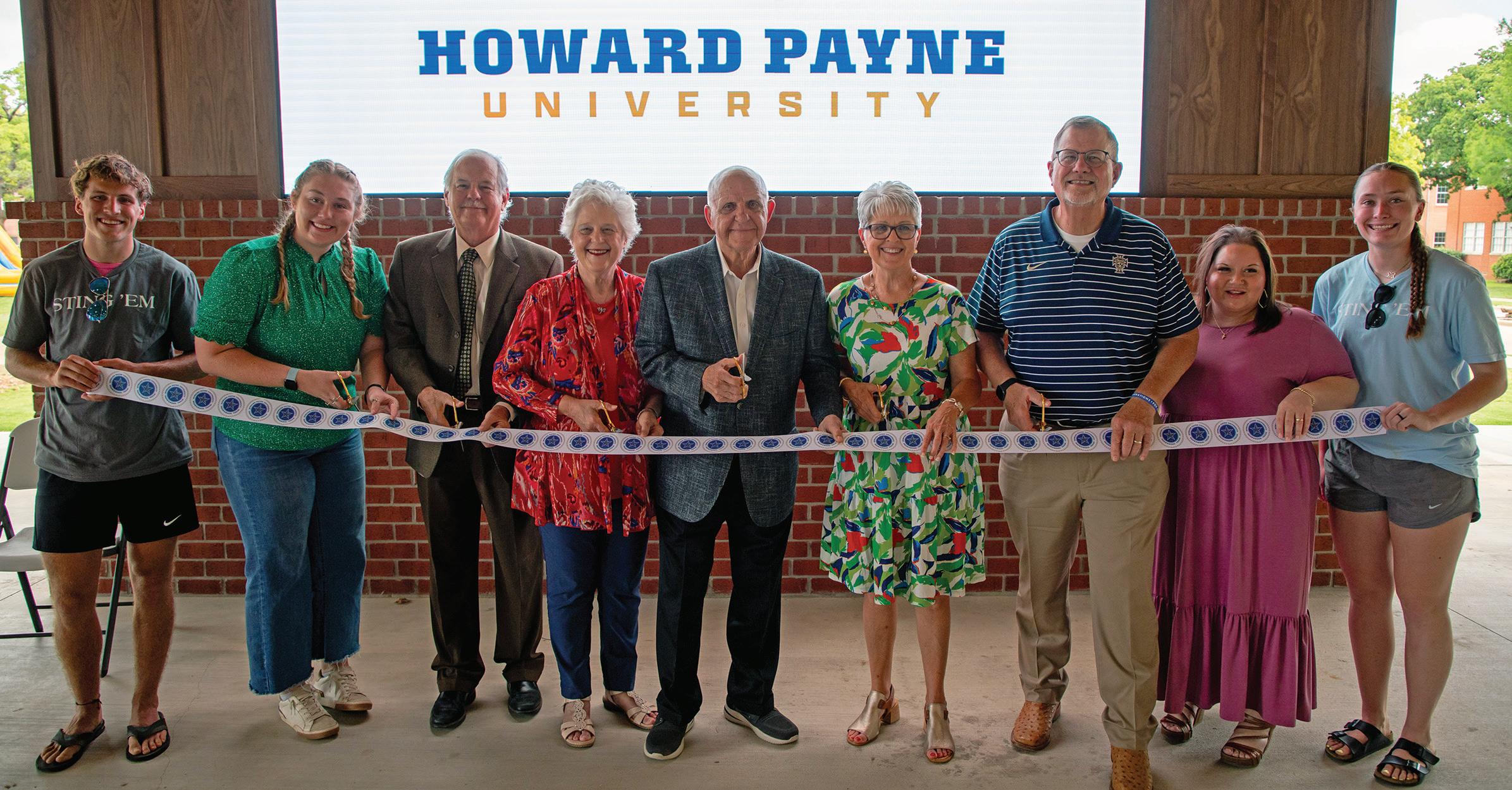 Howard Payne University held a special dedication ceremony and ribbon cuttings on April 26 for the new Ben and Bertha Mieth Outdoor Pavilion and Woody and Miki Martin Volleyball Courts on campus. The two new facilities are located between Veda Hodge Hall and the J. Howard Hodge Memorial Bell Towers.