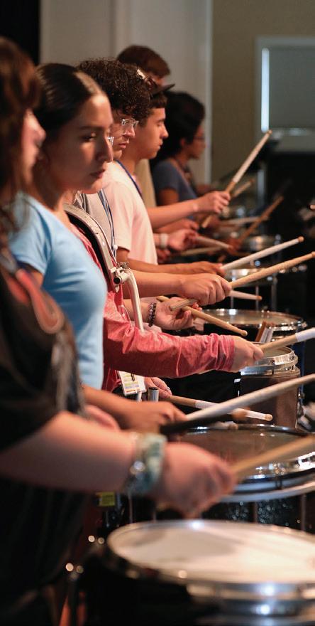 Students in HPU’s 51st Band Leadership Camp practice percussion in Mims Auditorium.