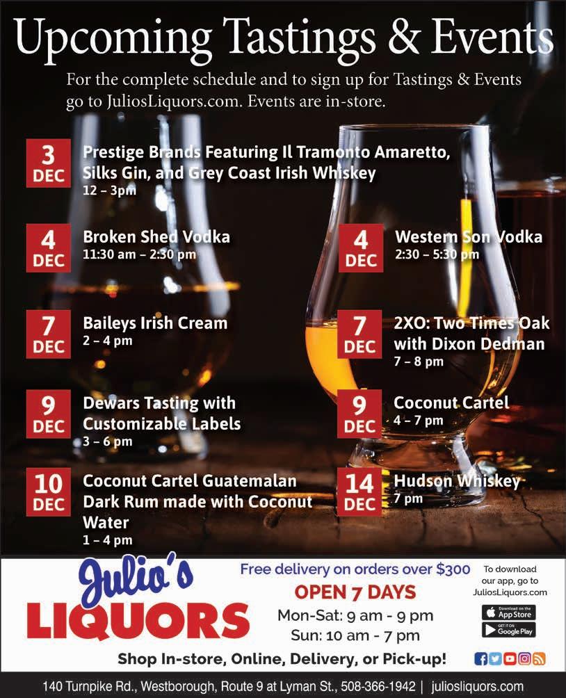 The holidays are meant to be a fun time with family and friends. However, it can turn deadly when we make bad decisions because we let too much alcohol impair our judgment. Before going to a holiday event where alcohol will be served, eat a small meal containing carbs or greasy foods. It will keep your stomach full and help you absorb the alcohol. Feel free to indulge in a few appetizers along with your drink to help pace yourself throughout the night. For your holiday wine and liquor requirements, stop by JULIO’S LIQUORS at 140 Turnpike Rd., Rt. 9 East, or call 508-366-1942