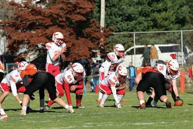 Above: The Hawks wait for the snap. Left: Marlborough celebrates after a play. PHOTOS/CAROLINE GORDON
