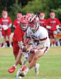 Left: Algonquin’s Owen Morse runs in front of the opponent and scoops up the ball.