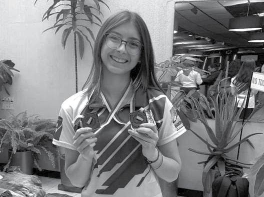 Below: Assabet Valley senior Sofia Ramirez-Granick displays the bronze and silver medals she won in the national under-18 bowling tournament in Colombia earlier this year.