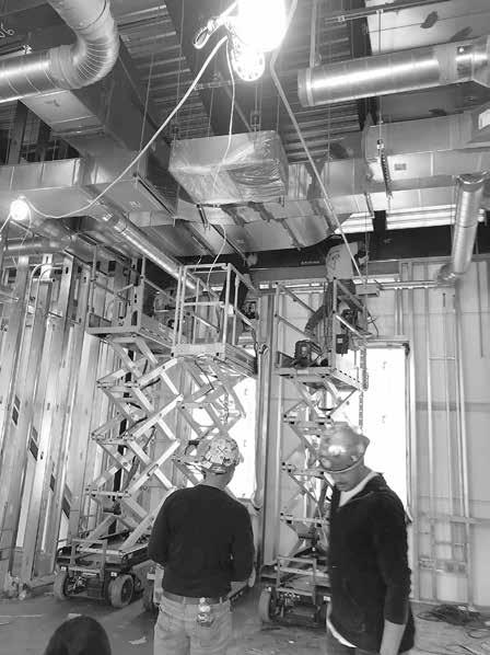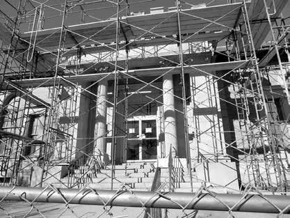 As fall turns into winter, the construc tion crews are preparing to commence work on the interior. That means plenty of yellow insulation materials for the ex terior, and blue tarps to cover equipment.
