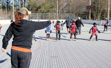 nection with the town; it welcomes players from all communities. According to Kim Bacon, a coach and member of the league’s board, a big advantage for Dek hockey is that the players don’t have to worry about skating skills.