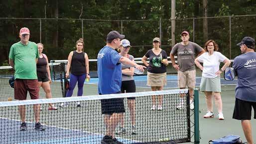 Travis Sullivan explains the sport at the town’s pickleball clinic.
